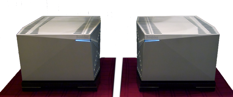 1500W/8 ohms- each mono block has a mass of 161kg! This tells about their extreme construction.